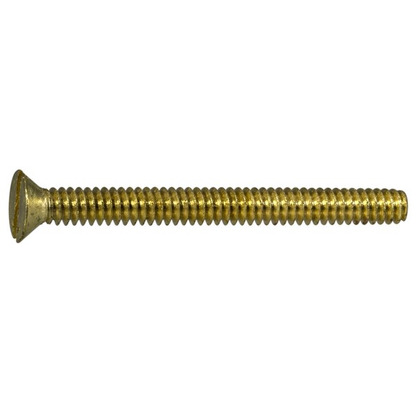 #10-24 x 2 in Slotted Flat Machine Screw, Plain Brass, 15 PK