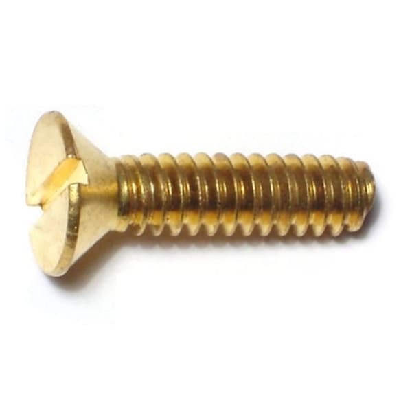 #10-24 x 3/4 in Slotted Flat Machine Screw, Plain Brass, 20 PK