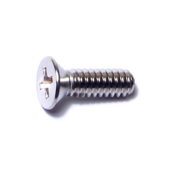 #10-24 x 5/8 in Phillips Flat Machine Screw, Plain 18-8 Stainless Steel, 100 PK