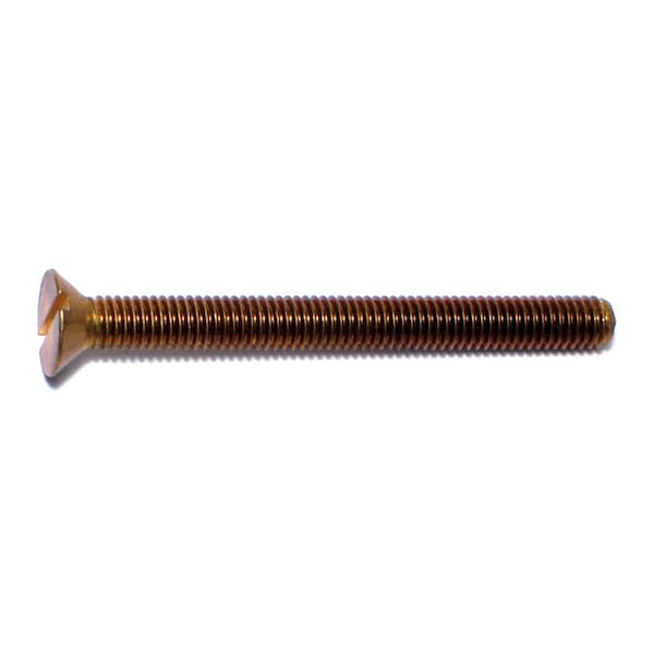 #10-32 x 2 in Slotted Flat Machine Screw, Plain Brass, 15 PK