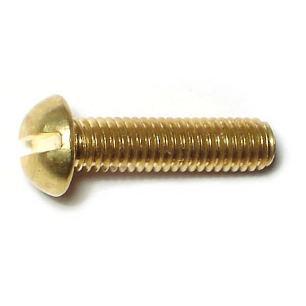 #10-32 x 3/4 in Slotted Round Machine Screw, Plain Brass, 20 PK