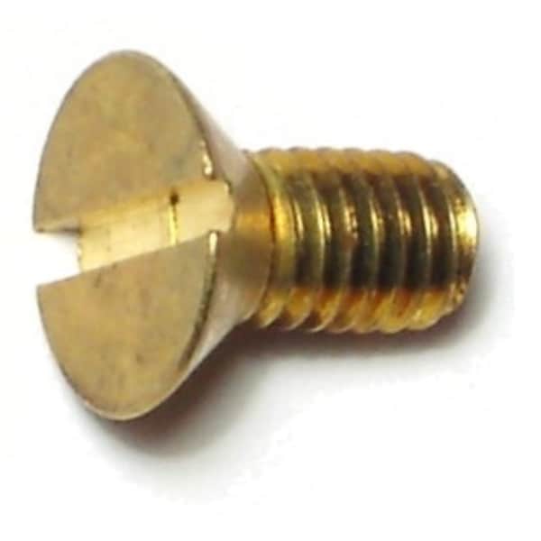 #10-32 x 3/8 in Slotted Flat Machine Screw, Plain Brass, 30 PK
