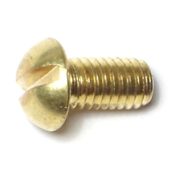 #10-32 x 3/8 in Slotted Round Machine Screw, Plain Brass, 30 PK
