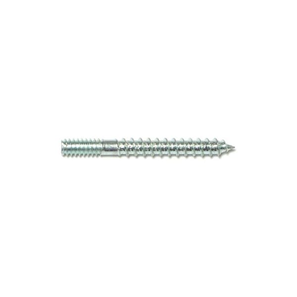 A hanger bolt is a headless fastener that has machine screw threads on one end and self-tapping threads on the other designed to be driven into wood or another soft substrate. Often used for mounting legs on tables.