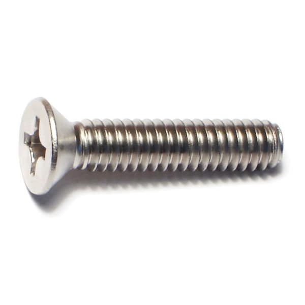 1/4"-20 x 1-1/4 in Phillips Flat Machine Screw, Plain 18-8 Stainless Steel, 12 PK