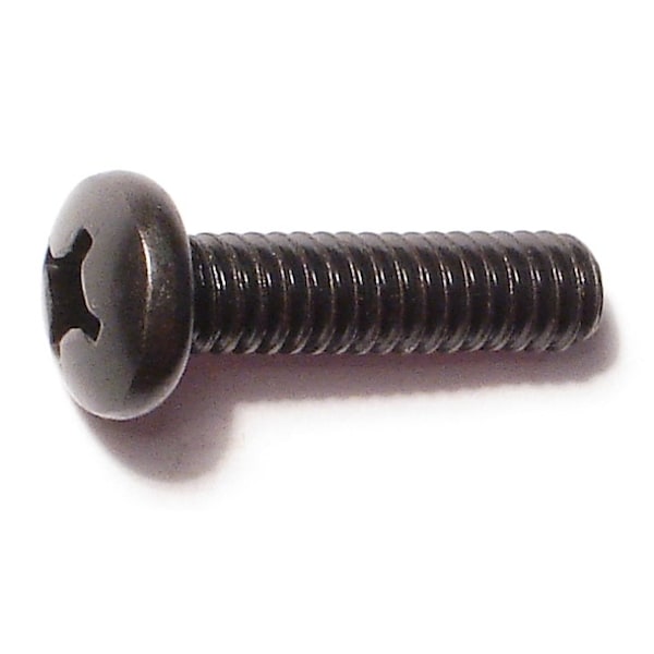 1/4"-20 x 1 in Phillips Pan Machine Screw, Black Oxide Steel, 12 PK