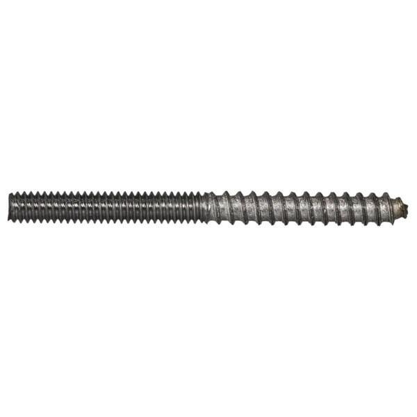A hanger bolt is a headless fastener that has machine screw threads on one end and self-tapping threads on the other designed to be driven into wood or another soft substrate. Often used for mounting legs on tables.