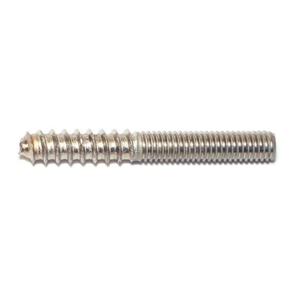A hanger bolt is a headless fastener that has machine screw threads on one end and self-tapping threads on the other designed to be driven into wood or another soft substrate. Often used for mounting legs on tables.