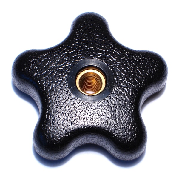 5/16"-18 x 1-1/4" Black Plastic Coarse Thread Thru-Hole Star Knobs 2PK