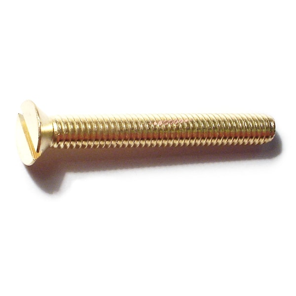 5/16"-18 x 2-1/2 in Slotted Flat Machine Screw, Plain Brass, 5 PK