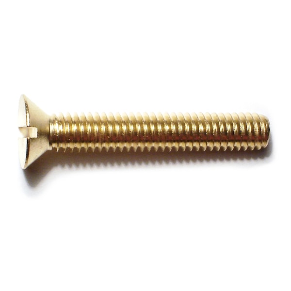 5/16"-18 x 2 in Slotted Flat Machine Screw, Plain Brass, 6 PK