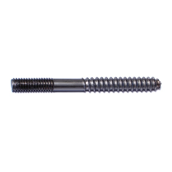 A hanger bolt is a headless fastener that has machine screw threads on one end and self-tapping threads on the other designed to be driven into wood or another soft substrate. Often used for mounting legs on tables.