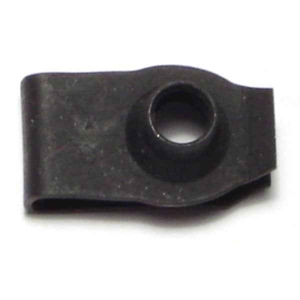 MIDWEST FASTENER brand 6mm-1.0 Black Phosphate Steel Coarse Thread Regular Extruded U Nuts 1 12PK is a speed nut made of steel with a phosphate finish. It has a regular length and a 6mm diameter with a 1.0mm coarse thread. The style is regular U.