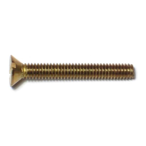 #8-32 x 1-1/4 in Slotted Flat Machine Screw, Plain Brass, 24 PK