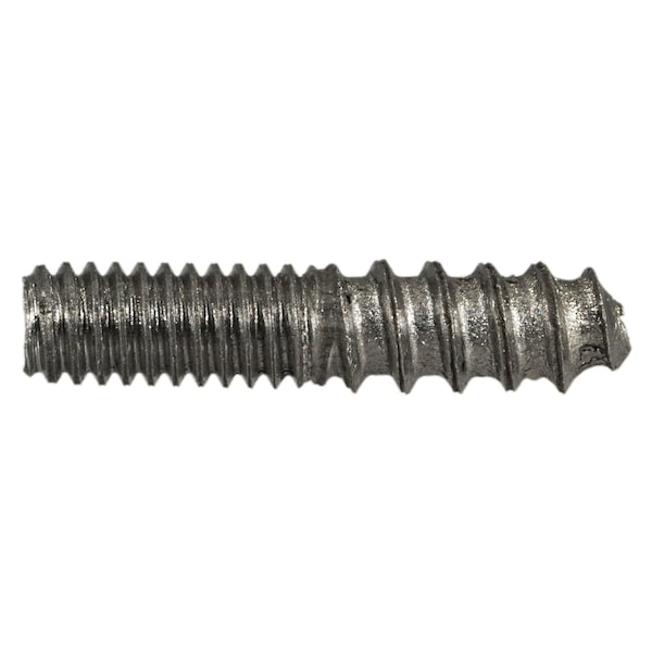 A hanger bolt is a headless fastener that has machine screw threads on one end and self-tapping threads on the other designed to be driven into wood or another soft substrate. Often used for mounting legs on tables.