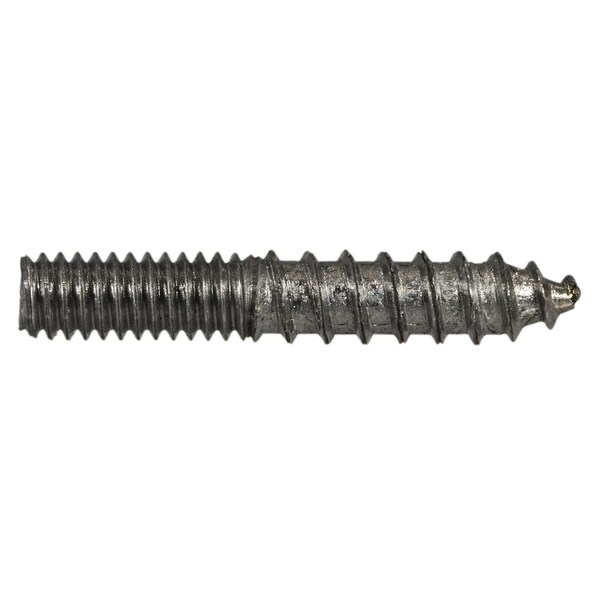 A hanger bolt is a headless fastener that has machine screw threads on one end and self-tapping threads on the other designed to be driven into wood or another soft substrate. Often used for mounting legs on tables.