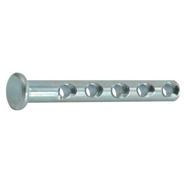 A clevis pin is a type of fastener that will allow rotation of the connected parts about the axis of the pin. A clevis pin consists of a head, shank and hole. The hole passes through the shank at the opposite end of the pin from the head. A cotter pin is inserted through the hole to keep the clevis pin in place after assembly of the parts to be fastened.