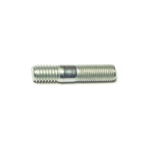 Double-End Threaded Stud, 3/8"-16 Thread to 3/8"-24 Thread, 1 3/4 in, Steel, Zinc Plated, 8 PK