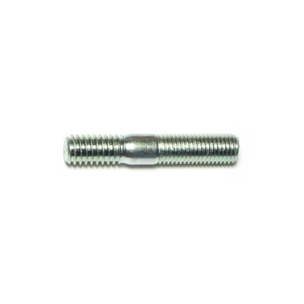 Double-End Threaded Stud, 5/16"-18 Thread to 5/16"-24 Thread, 1 3/4 in, Steel, Zinc Plated, 8 PK