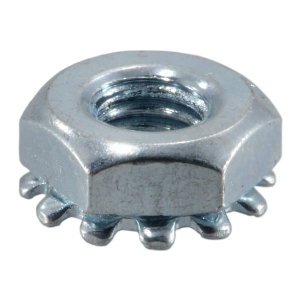 External Tooth Lock Washer Lock Nut, #10-32, Steel, Grade 2, Zinc Plated, 20 PK