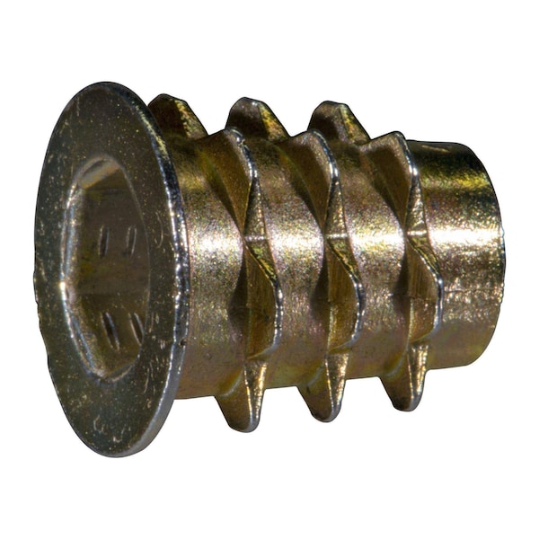 Hex Drive Threaded Insert, M6 Int Thrd Sz, 13 mm L, Zinc Alloy, Brass, 15 PK