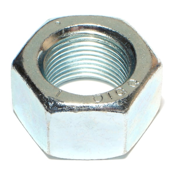 Hex Nut, 1"-14, Steel, Grade 5, Zinc Plated, 2 PK