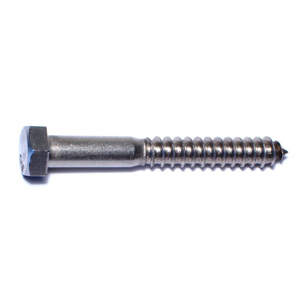 Lag Screw, 1/2 in, 4 in, Stainless Steel, Hex Hex Drive, 2 PK