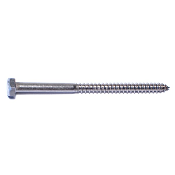 Lag Screw, 1/4 in, 4 in, Stainless Steel, Hex Hex Drive, 3 PK