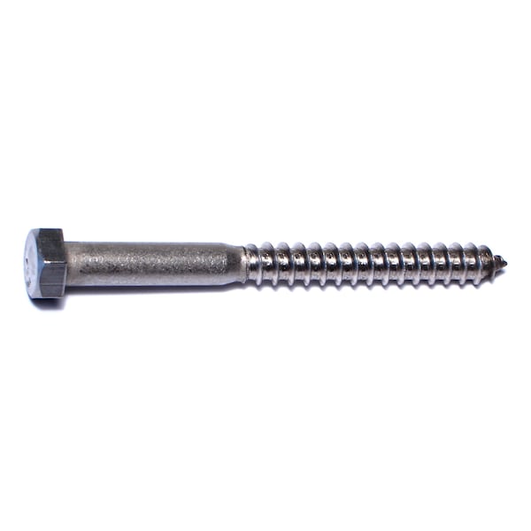 Lag Screw, 3/8 in, 4 in, Stainless Steel, Hex Hex Drive, 25 PK