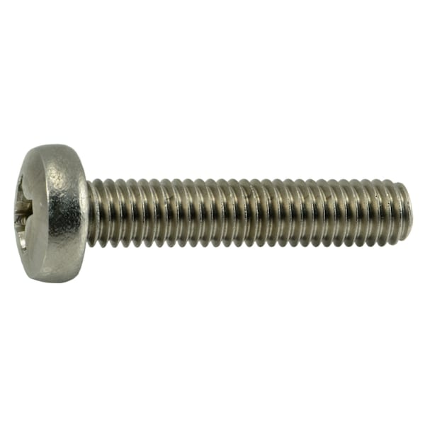 M6-1.00 x 30 mm Phillips Pan Machine Screw, Plain Stainless Steel, 100 PK