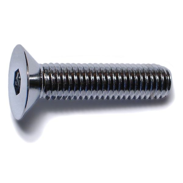 M8-1.25 Socket Head Cap Screw, Flat, Chrome Plated Steel, 35 mm Length, 10 PK
