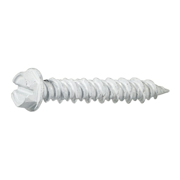 Masonry Screw, 1/4" Dia., Hex, 1-1/4" L, Steel White Ruspert, 100 PK