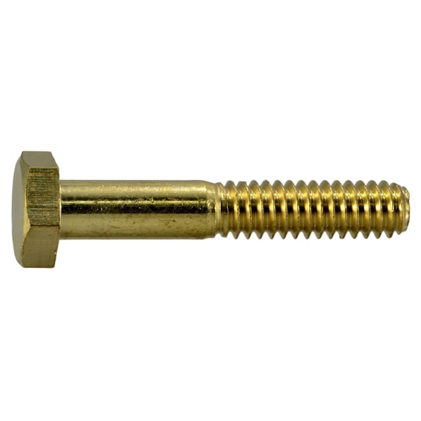 Not Graded, 1/4"-20 Hex Head Cap Screw, Plain Brass, 1-1/2 in L, 6 PK