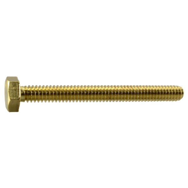Not Graded, 1/4"-20 Hex Head Cap Screw, Plain Brass, 2-1/2 in L, 2 PK