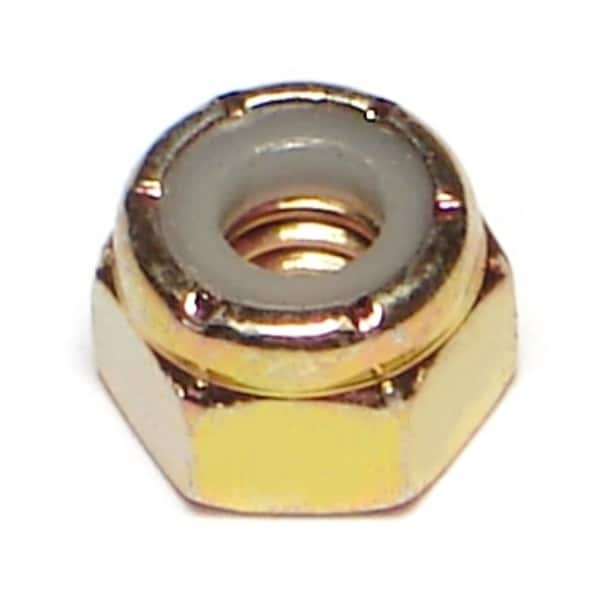 Nylon Insert Lock Nut, 1/4"-20, Steel, Grade 8, Yellow Zinc, 12 PK