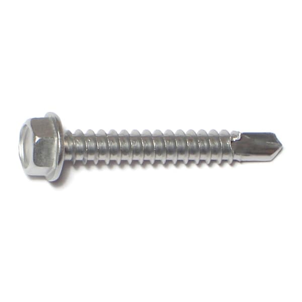 Self-Drilling Screw, #12 x 1-1/2 in, Plain Stainless Steel Flange Hex Head External Hex Drive
