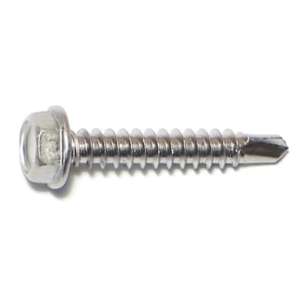 Self-Drilling Screw, #8 x 1 in, Plain Stainless Steel Flange Hex Head External Hex Drive, 30 PK