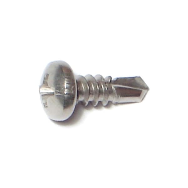 Self-Drilling Screw, #8 x 1/2 in, Plain Stainless Steel Pan Head Phillips Drive, 25 PK