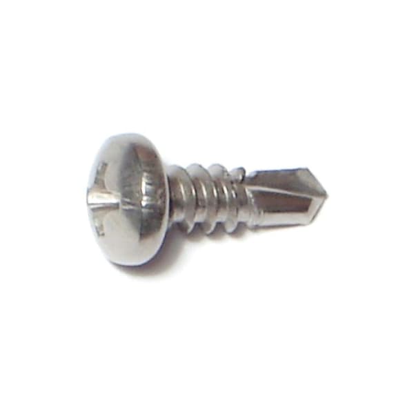 Self-Drilling Screw, #8 x 1/2 in, Plain Stainless Steel Pan Head Phillips Drive, 30 PK