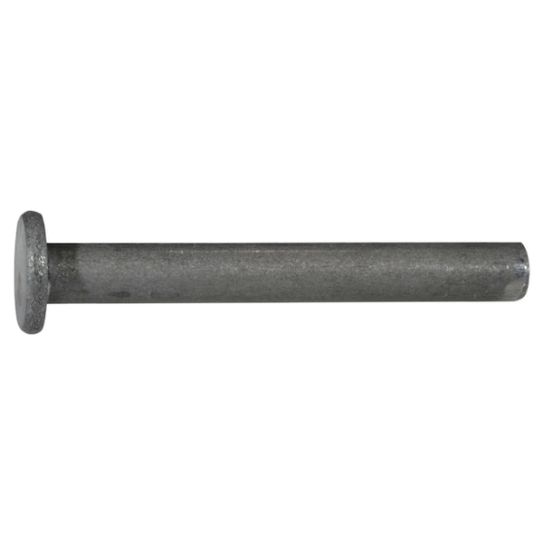 Solid Rivet, Flat Head, 1/4 in Dia., 2 in L, Steel Body, 8 PK