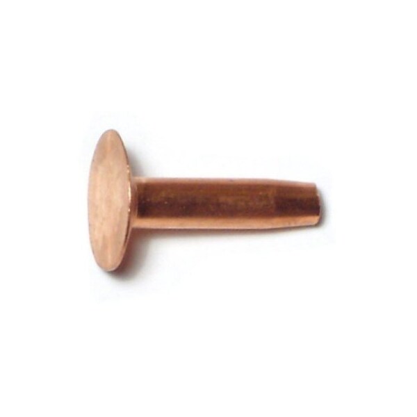 Solid Rivet, Flat Head, #8 Dia., 3/4 in L, Copper Body, 40 PK