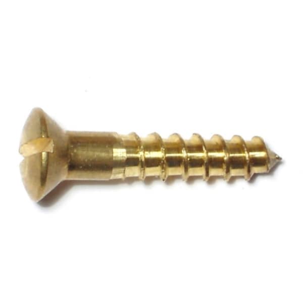 Wood Screw, #10, 1 in, Plain Brass Oval Head Slotted Drive, 40 PK