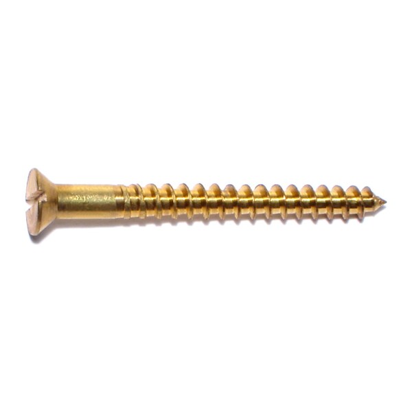 Wood Screw, #10, 2 in, Plain Brass Flat Head Slotted Drive, 25 PK