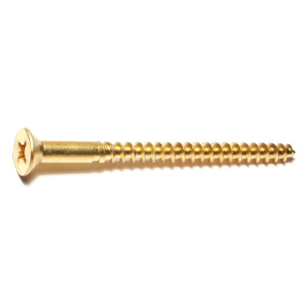 Wood Screw, #12, 3 in, Plain Brass Flat Head Phillips Drive, 100 PK