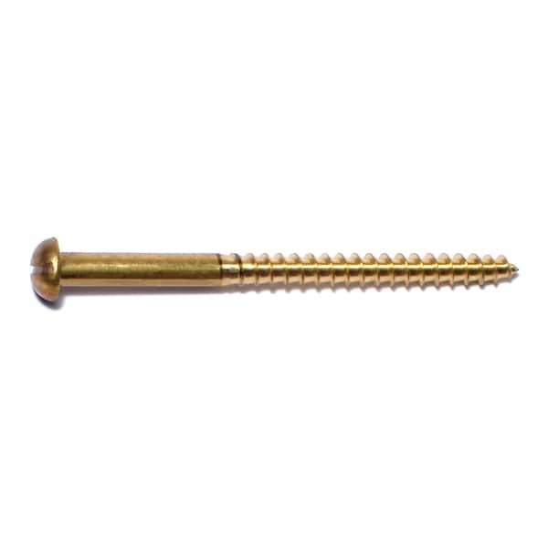 Wood Screw, #12, 3 in, Plain Brass Round Head Slotted Drive, 16 PK