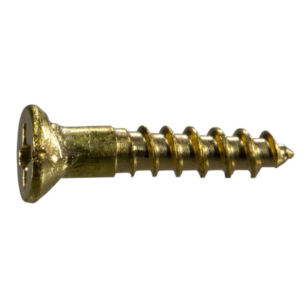 Wood Screw, #3, 1/2 in, Plain Brass Flat Head Phillips Drive, 100 PK