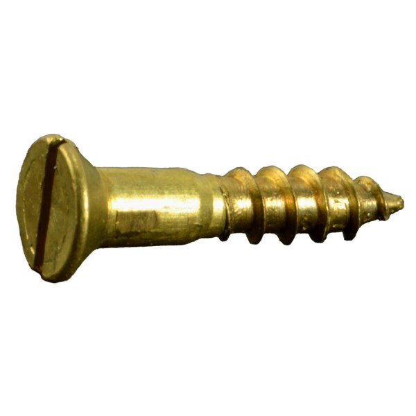 Wood Screw, #3, 1/2 in, Plain Brass Flat Head Slotted Drive, 25 PK