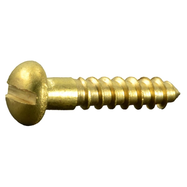 Wood Screw, #3, 1/2 in, Plain Brass Round Head Slotted Drive, 25 PK