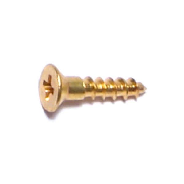 Wood Screw, #4, 1/2 in, Plain Brass Flat Head Phillips Drive, 60 PK