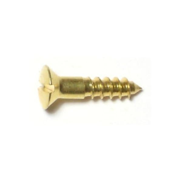 Wood Screw, #4, 1/2 in, Plain Brass Oval Head Slotted Drive, 60 PK